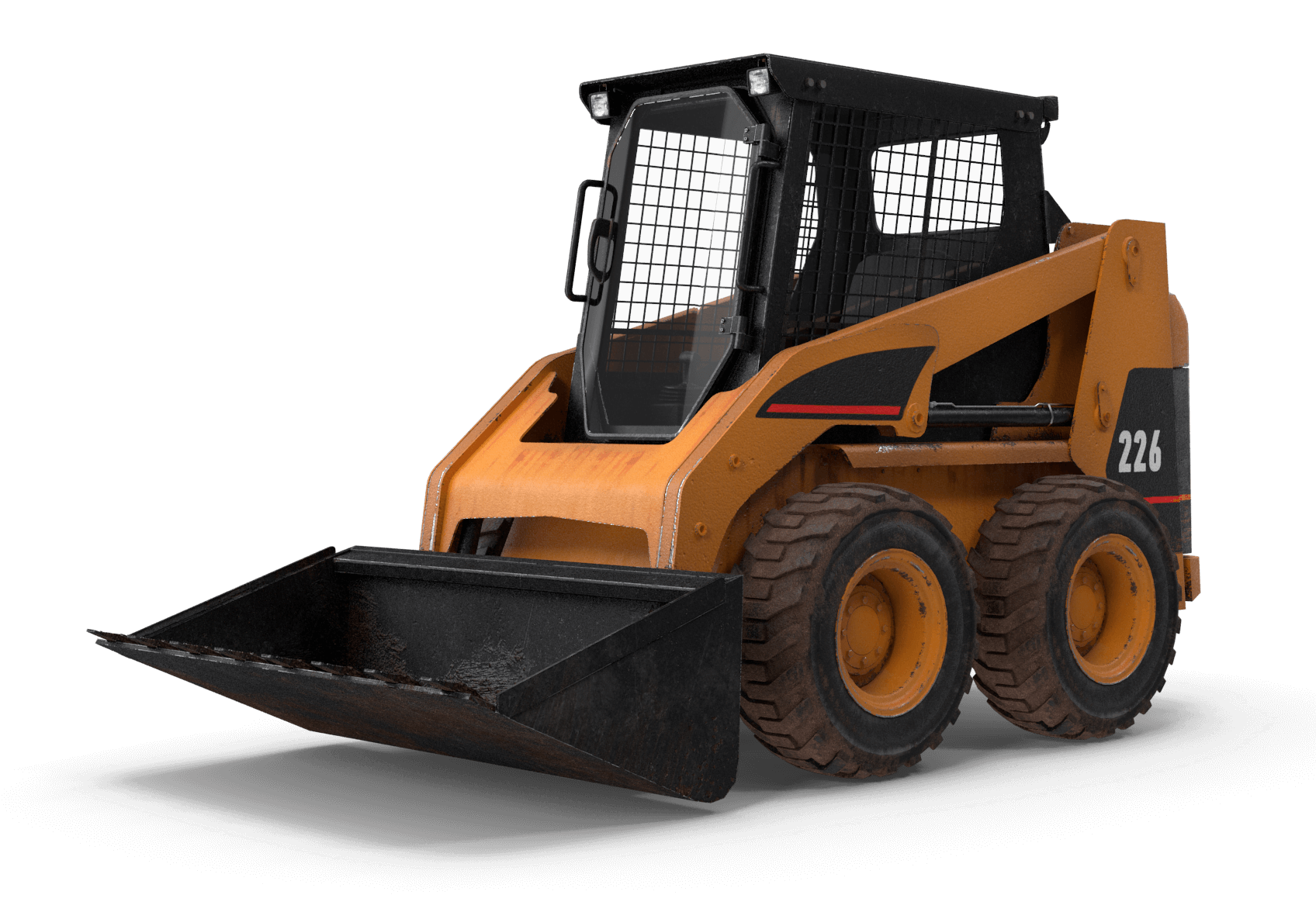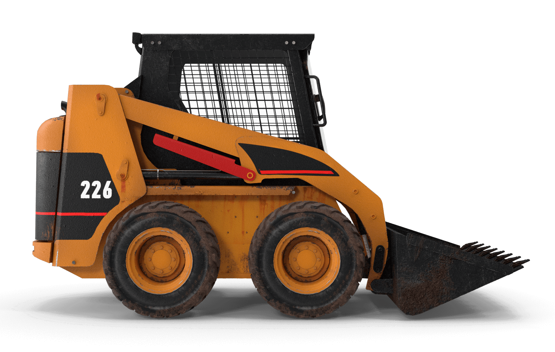 Skid-steer loaders are typically four-wheeled or tracked vehicles with the front and back wheels on each side mechanically linked together to turn at the same speed, and where the left-side drive wheels can be driven independently of the right-side drive wheels. This is accomplished by having two separate and independent transmissions; one for the left side wheels and one for the right side wheels.